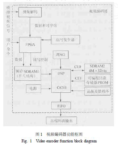 UV)分離、數(shù)據(jù)I/O(Input/Output)等所有周邊功能,使用高性能的DSP進(jìn)行視頻壓縮編碼,因而在視頻編碼器內(nèi)DSP和FPGA能夠進(jìn)行流水操作,有效地提高了編碼器的性能。