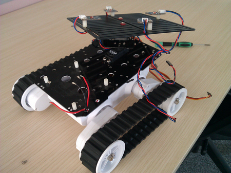 由于Romeo的工作電壓在7~12v,并且履帶小車(chē)的工作電壓與Romeo控制器相近,所以使用了6節(jié)1.2V的充電電池作為電機(jī)和Romeo控制器的電源,當(dāng)然,選用7.4V的鋰電池也會(huì)是一種比較合適的選擇。
