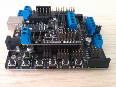 5.將Xbee傳感器擴(kuò)展板插在DFRduino Romeo 328控制板上。
