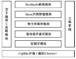 典型的基于嵌入式Linux操作系統(tǒng)的嵌入式軟件開發(fā)流程如下[1]:( 1)獲取硬件系統(tǒng)的信息:如選取的微處理器體系,F(xiàn)lash型號、網(wǎng)卡型號及其他外設(shè)的信息等;( 2)建立交叉編譯工具:一般的GCC工具都是針對X86體系的,為了能夠生產(chǎn)目標(biāo)板執(zhí)行的代碼必須建立交叉編譯工具;( 3)開發(fā)Bootloader:建立啟動系統(tǒng)的主引導(dǎo)程序;( 4)移植Linux內(nèi)核:如基于Linux2.6內(nèi)核移植;( 5)開發(fā)一個根文件系統(tǒng):如rootfs的制作;( 6)開發(fā)特定硬件的驅(qū)動程序:如LCD,Keypad等;( 7)開發(fā)上層的應(yīng)用程序:如QT GUI開發(fā)。