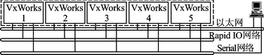 目前課題的整個(gè)系統(tǒng)是由5塊相同的嵌入式開發(fā)板組成,硬件平臺(tái)是PowerPC MPC8548ERM,移植的操作系統(tǒng)為VxWorks 5.5,開發(fā)板之間的連接通信目前實(shí)現(xiàn)了3種方式,即以太網(wǎng)、串口和Rapid IO方式,本方案時(shí)間同步協(xié)議的實(shí)現(xiàn)是基于以太網(wǎng)通信介質(zhì)的。其中一塊開發(fā)板作為時(shí)間服務(wù)器,并通過串口和上位機(jī)相連接,以實(shí)現(xiàn)通過上位機(jī)來控制整個(gè)分布式系統(tǒng)。NTP網(wǎng)絡(luò)分布式系統(tǒng)結(jié)構(gòu)如圖3所示。