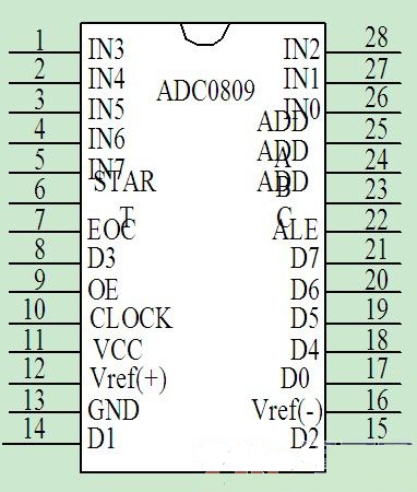 ADC0809是典型的8位8通道逐次逼近式A/D轉(zhuǎn)換器,CMOS工藝。