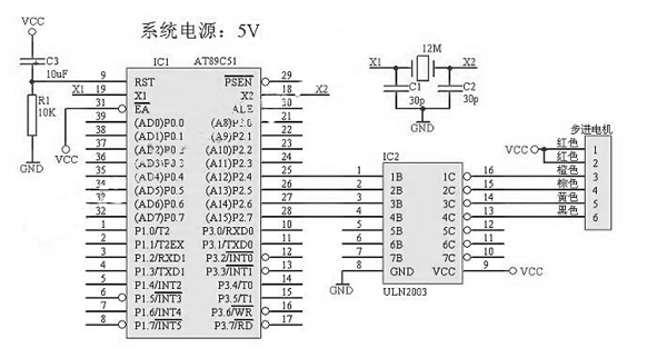 ULN2003的驅(qū)動直接用單片機系統(tǒng)的5V電壓,可能力矩不是很大,大家可自行加大驅(qū)動電壓到12V。