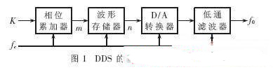 一個基本的DDS由相位累加器、波形存儲器ROM、D/A轉換器和低通濾波器組成,如圖1所示。