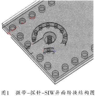 采用異面結(jié)構(gòu),可設(shè)定下層基板為SIW,上層基板為普通PCB,并在上層基板上蝕刻微帶線。上層微帶線通過金屬探針與下層SIW連接,探針與SIW底部接觸。