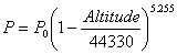 可以用下面的表達式表示大氣壓與海拔高度之間關系 [1]: