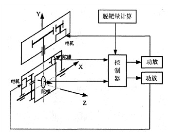 為了實(shí)現(xiàn)在機(jī)載環(huán)境下迅速捕獲、跟蹤、瞄準(zhǔn)運(yùn)動(dòng)的目標(biāo),這就必須建立陀螺穩(wěn)定系統(tǒng)。吊艙陀螺穩(wěn)定系統(tǒng)的作用就是快速而準(zhǔn)確地跟蹤目標(biāo),隔離載體的搖擺。系統(tǒng)框圖如圖1所示。