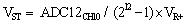 對(duì)于12位的ADC模塊,VST可以通過(guò)下面的A/D轉(zhuǎn)換公式求得: