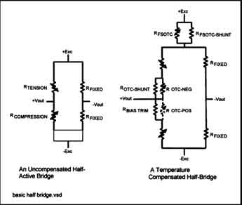 在半有源惠斯通電橋電路(如圖2所示)中,電橋只有兩個元件是應(yīng)變片,它們響應(yīng)材料中的應(yīng)變。這種配置的輸出信號(滿量程負(fù)載一般為1mV/V)是全有源電橋的一半。