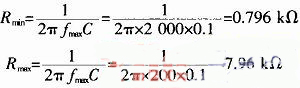 此處選取C為0.1μF時(shí),分別求出對(duì)應(yīng)f在200Hz~2 kHz;2~20 kHz的電阻值。