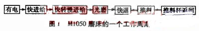M型磨床是M1050型無(wú)心磨床的簡(jiǎn)稱,是一種自動(dòng)化程度要求較高的機(jī)床設(shè)備,主要對(duì)圓錐度小于1:20的圓錐體和各種成型回轉(zhuǎn)體零件的切入磨加工,附加通磨托架,可作通磨加工。磨床控制系統(tǒng)一直采用繼電器邏輯控制方式,導(dǎo)輪的速度調(diào)節(jié)由直流變換裝置控制直流電動(dòng)機(jī)得到,既不方便,效率又低。