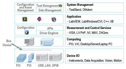 圖2. NI公司提供了一套完整的、用于設(shè)計(jì)自動(dòng)化測試系統(tǒng)的軟硬件解決方案