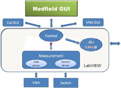 我們用LabVIEW和PXI平臺(tái)建立了一套系統(tǒng),將一個(gè)基于PC的控制器、一個(gè)NI PXI-2547、一個(gè)NI PXI-2548射頻儀器和一個(gè)NI PXIe-5630網(wǎng)絡(luò)分析儀整合為一個(gè)獨(dú)立單元。該測(cè)量裝置戴在病人頭上,并且使用十二根天線與系統(tǒng)相連。