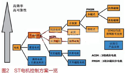 一直把電機(jī)控制領(lǐng)域做為主要發(fā)展方向之一,致力于MCU和控制方案的研發(fā)和推廣。無(wú)論在8位還是32位MCU中,都設(shè)計(jì)有專(zhuān)門(mén)針對(duì)馬達(dá)控制的產(chǎn)品,尤其32位MCU(STM32),在其不同的內(nèi)核(分別為Cortex-M0、Cortex-M3、Cortex-M4)的基礎(chǔ)上,集成了豐富的電機(jī)控制外設(shè),如:馬達(dá)控制高級(jí)定時(shí)器、Hall/Encoder位置傳感器接口、多個(gè)高速ADC模塊(從1MSPS 到5MSPS)、DAC模塊、高速運(yùn)放及比較器等。去年,ST發(fā)布了新一代產(chǎn)品STM32F3,其基于Cortex-M4內(nèi)核,支持浮點(diǎn)運(yùn)算及DSP指令,內(nèi)部集成了4個(gè)高速運(yùn)放及7個(gè)比較器,運(yùn)用于電機(jī)的高端FOC控制。因此,ST豐富的MCU產(chǎn)品系列覆蓋了從低端到高端FOC電機(jī)控制的整個(gè)領(lǐng)域。