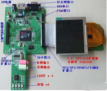 圖1:擴(kuò)展性超強(qiáng)的ADI Blackfin學(xué)習(xí)板。
