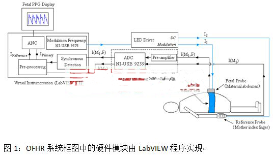 使用LabVIEW 圖形化系統(tǒng)設(shè)計(jì)軟件和NI硬件開發(fā)光學(xué)胎心率 (OFHR)檢測系統(tǒng)。在OFHR系統(tǒng)中,SNR由于入射功率的降低而隨之降低;激勵(lì)信號為調(diào)制后的光束。系統(tǒng)可實(shí)施同步檢測,LabVIEW中的軟件子程序使用NI 9474數(shù)字輸出模塊在計(jì)數(shù)器端生成調(diào)制頻率。