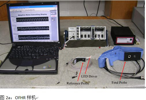 我們的研究團(tuán)隊(duì)提出了基于光電血管容積圖(PPG) 信號的低功率光學(xué)技術(shù),以無創(chuàng)傷性地檢測胎心率。PPG信號是由光線經(jīng)過血液脈動調(diào)制后產(chǎn)生的。醫(yī)生或技術(shù)員用LED燈(低于68 mW)照射孕婦腹部,光束經(jīng)由母親和胎兒的血液循環(huán)進(jìn)行調(diào)制??纱┩傅淖畲蠊獠úㄩL是890 nm。該混合信號可通過使用數(shù)字信號處理得到的自適應(yīng)濾波進(jìn)行分析,并采用孕婦的食指PPG作為參考輸入。