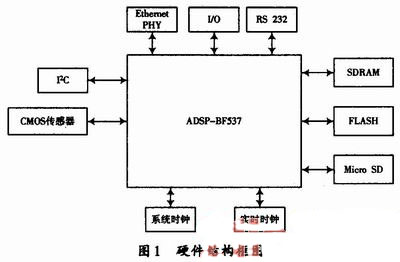 在本設(shè)計(jì)中,相機(jī)采用了ADI公司的ADSP-BF537作為控制核心。ADSP-BF537是具有較高性能的系列成員,擁有容量更大的嵌入式存儲器,從而可滿足諸如視頻安全/監(jiān)控和基于工業(yè)環(huán)境的分布式控制/工廠自動化應(yīng)用等嵌入式應(yīng)用的較高吞吐量需求。ADSP-BF537提供了卓越的性能,并專為諸如遠(yuǎn)程監(jiān)視設(shè)備、VoIP、銷售點(diǎn)終端以及生物特征識別/安全應(yīng)用等低成本連接設(shè)備而設(shè)計(jì)。作為整個系統(tǒng)的核心,ADSP-BF537具有接口豐富,性能優(yōu)良,價(jià)格便宜的特點(diǎn),并具有強(qiáng)大的多媒體數(shù)據(jù)處理能力。