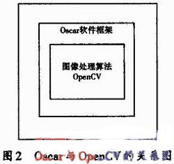 相機(jī)的軟件程序設(shè)計(jì)使用了一個Oscar(Open source camera)框架平臺和OpenCV視覺庫,從而使軟件設(shè)計(jì)更加的簡單、方便、快捷,圖2為Oscar框架與OpenCV的關(guān)系圖。Oscar為軟件的設(shè)計(jì)提供了簡易的應(yīng)用方法模塊,并且隱藏了硬件接口的復(fù)雜性,從而使軟件設(shè)計(jì)者不需要關(guān)心底層硬件程序的設(shè)計(jì)。而OpenCV構(gòu)建了一個簡單易用的計(jì)算機(jī)視覺框架,幫助并發(fā)人員更便捷地設(shè)計(jì)更復(fù)雜的計(jì)算機(jī)視覺相關(guān)的應(yīng)用程序。