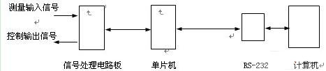 霍爾傳感器性能測試系統(tǒng)的硬件結(jié)構(gòu)如圖1所示。信號(hào)處理電路板一方面接收霍爾傳感器的測量信號(hào),并處理成標(biāo)準(zhǔn)信號(hào)傳送給單片機(jī),另一方面根據(jù)單片機(jī)傳送的數(shù)據(jù),產(chǎn)生相應(yīng)的控制信號(hào),使霍爾傳感器在規(guī)定的條件下進(jìn)行工作。單片機(jī)通過RS-232串行通信口,向計(jì)算機(jī)傳送測量信號(hào),并接收控制信號(hào)。計(jì)算機(jī)用于霍爾傳感器性能測試數(shù)據(jù)的顯示、分析和存儲(chǔ)。