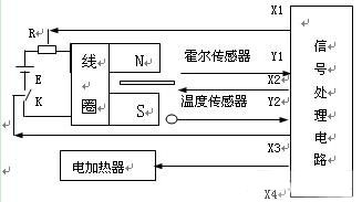 X1—控制信號(hào),調(diào)節(jié)電阻R,控制磁場強(qiáng)度 X2—控制信號(hào),調(diào)節(jié)霍爾傳感器的激勵(lì)電流