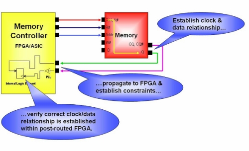 DDR或四倍數(shù)據(jù)速率(QDR)存儲(chǔ)設(shè)備可以提供和接受兩倍于器件時(shí)鐘頻率的源同步數(shù)據(jù),這意味著數(shù)據(jù)在時(shí)鐘的上升緣和下降緣傳輸。此外,需要捕捉時(shí)鐘偏移調(diào)整,以確保適當(dāng)?shù)臅r(shí)鐘與數(shù)據(jù)關(guān)系。如前所述,現(xiàn)在一些FPGA裝置包括DDR接口的I/O單元和板上的PLL網(wǎng)絡(luò)。這意味著,你必須有一個(gè)方式來(lái)控制模塊的準(zhǔn)確和可靠。為了說(shuō)明這一點(diǎn),讓我們來(lái)讀取QDR II SRAM源同步接口的設(shè)計(jì)要求看看實(shí)例。