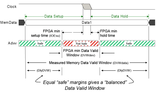 理想的解決辦法是為器件的建立和保持提供一個(gè)最大的安全空余,可以通過(guò)轉(zhuǎn)化平衡空余,為二者都提供相同的安全空余。為了平衡空余,我們?yōu)榻邮掌骷_定最低的有效數(shù)據(jù)窗口,在實(shí)際有效數(shù)據(jù)窗口的中心窗內(nèi)可以給我們的存儲(chǔ)器提供設(shè)計(jì)參數(shù)。