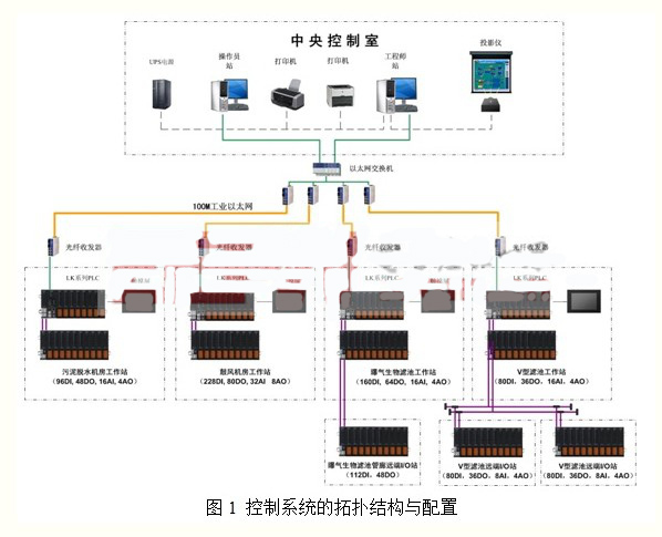 中控室管理層是系統(tǒng)的核心,完成對污水處理過程各部分的管理和控制,并實現(xiàn)廠級的辦公自動化。通過高分辨率液晶顯示器及投影儀可直觀地動態(tài)顯示全廠各工藝流程段的實時工況、各工藝參數(shù)的趨勢畫面,操作人員可及時掌握全廠運行情況。