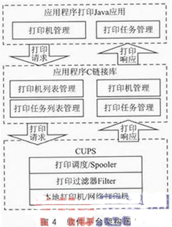 軟件平臺基于Android實現(xiàn),人機操作界面采用Java語言編寫,Java語言通過JNI訪問打印框架鏈接庫,再由打印鏈接庫完成與后臺打印服務(wù)程序的通信。整體實現(xiàn)遵循Linux系統(tǒng)下的CUPS標準,針對不同型號的打印機提供相應(yīng)的CUPS打印驅(qū)動程序即可完成文件的打印。