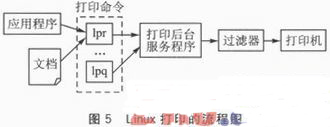 CUPS作為通用打印系統(tǒng),默認已支持多種類型的文檔的打印,Linux下的打印流程如圖5所示。