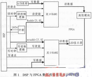 現(xiàn)在,數(shù)字信號(hào)處理器(DSP)正越來(lái)越多地應(yīng)用到各種場(chǎng)合,大多數(shù)情況下,模擬信號(hào)通過(guò)A/D轉(zhuǎn)換后,轉(zhuǎn)成高速的數(shù)字信號(hào)發(fā)送給FPGA,經(jīng)過(guò)緩沖FPGA向DSP傳送數(shù)據(jù),在DSP中進(jìn)行核心算法的處理后,再把信號(hào)發(fā)回給FPGA,通過(guò)FPGA把發(fā)回的信號(hào)進(jìn)行邏輯組合后通過(guò)D/A轉(zhuǎn)換成模擬信號(hào)輸出??梢?jiàn),F(xiàn)PGA和DSP的通信是數(shù)據(jù)傳輸?shù)年P(guān)鍵。