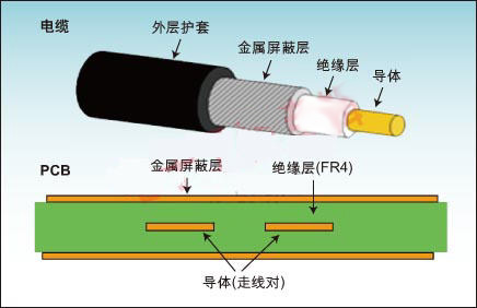 圖1:同軸電纜和PCB的比較。