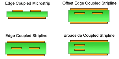 如圖2所示的橫截面是實際差分線版圖的最常見圖案。在采用帶狀線布線時,信號被FR-4材料夾在中間。而微帶線時,一條導體是裸露在空氣中的。因為空氣的介電常數(shù)最低(Er= 1),故頂層最適合布設一些關鍵信號,如時鐘信號或者高頻的SERial-DESerial (SERDES)信號。 微帶線布線應該耦合到下方的地平面,該地平面通過吸收部分電磁場線來減小電磁干擾(EMI)。在帶狀線中,所有的電磁場線耦合到上方和下方的參考平面,這大大降低了EMI。如果可能的話,應該盡量不要用寬邊耦合帶狀線設計。這種結構容易受到參考面中耦合的差分噪聲的影響。另外還需要PCB的均衡制造,這是很難控制的??偟膩碚f,控制位于同一層上的線間距還是比較容易的。