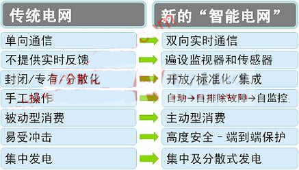 表1:傳統(tǒng)電網(wǎng)與新的智能電網(wǎng)之間的簡(jiǎn)單對(duì)比。