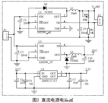 多功能電子焊接操作臺由排風(fēng)風(fēng)扇、LED照明燈、反射式光電開關(guān)、直流電源輸出端子、液晶顯示屏、環(huán)境照度檢測傳感器和主控電路組成。通過外部電源適配器提供直流電源,通過調(diào)壓型LM2596和固定5V的LM2596提供可調(diào)直流電源和固定5V的直流電源,通過AMS1117-3.3穩(wěn)壓輸出3.3V電源給主控系統(tǒng)供電。