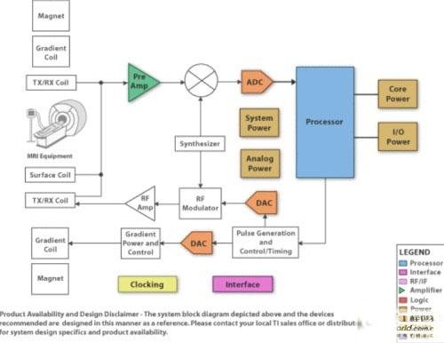 全身 MRI 系統(tǒng)可能有一個(gè)多達(dá)76個(gè)元件或通道的線圈矩陣。另外,低壓(LV)模擬輸入沿長(zhǎng)同軸線纜從肢體線圈傳輸至模擬信號(hào)鏈前置放大器。當(dāng)談到MRI接收信號(hào)鏈時(shí),兩個(gè)關(guān)鍵隨之出現(xiàn):如何獲得高信噪比(SNR)(至少約84dB或14位);如何實(shí)現(xiàn)總系統(tǒng)的極高總動(dòng)態(tài)范圍(至少150dB/Hz左右)。獲得高SNR要求一個(gè)超低噪聲系數(shù)的高性能前置放大器。使用如動(dòng)態(tài)增益調(diào)節(jié)或模擬輸入壓縮等創(chuàng)新方案可以達(dá)到高動(dòng)態(tài)范圍要求。