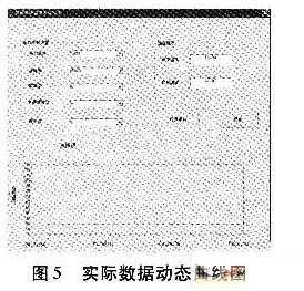 當(dāng)上位機(jī)MODBUS串口程序把下位機(jī)的實(shí)際數(shù)據(jù)采集上來并顯示界面中后,就可以對(duì)實(shí)際數(shù)據(jù)繪制動(dòng)態(tài)曲線圖。動(dòng)態(tài)曲線橫坐標(biāo)是時(shí)間,縱坐標(biāo)是實(shí)際數(shù)據(jù)值,兩個(gè)坐標(biāo)確定一個(gè)動(dòng)態(tài)點(diǎn)。動(dòng)態(tài)曲線的顯示過程是把動(dòng)態(tài)的數(shù)據(jù)值放到一個(gè)數(shù)組中,每采集一個(gè)新的數(shù)據(jù)值存放在數(shù)組的最低位,數(shù)組中的所有數(shù)據(jù)位向前移一位,最高的數(shù)據(jù)位移出;在MSCOMM控件OnOnCommMscomm函數(shù)中得到當(dāng)前具體的時(shí)、分、秒,再將具體時(shí)間顯示在橫坐標(biāo)相應(yīng)位置,然后把數(shù)組中的所有數(shù)字以及每個(gè)數(shù)字所對(duì)應(yīng)的時(shí)間的坐標(biāo)點(diǎn)用線連接起來就構(gòu)成了動(dòng)態(tài)曲線圖,動(dòng)態(tài)曲線圖如圖5所示。