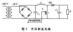 系統(tǒng)主硬件電路由電源部分、整流濾波電路、DC/DC轉換電路、驅動電路、MSP430單片機等部分組成。交流輸入電壓經整流濾波電路后經過DC/DC變換器,采用Boost升壓斬波電路DC/DC變換,如圖2所示: