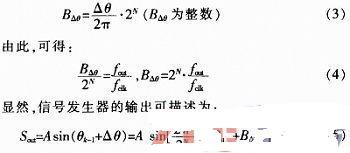 對于正弦信號發(fā)生器,它的輸出可以用下式來描述:Sout=Asinωt=Asin(2πfoutt) (1)
