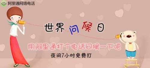 用阿里通網(wǎng)絡(luò)電話打長途,比用傳統(tǒng)電話打市話還要便宜。當今社會流行 “打工潮”和“出國潮”,人們的距離在不斷拿大,聯(lián)系也變得越來越少。世界問候日到了,不妨借著這個好時機,給你關(guān)心的人或者久未聯(lián)系的人打個電話,送上一份溫暖和牽掛吧。