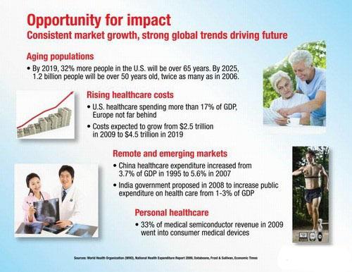 人們做了大量的工作以便利用技術(shù)來改進(jìn)醫(yī)療設(shè)備的質(zhì)量和易用性。影響無線醫(yī)療解決方案的一個(gè)關(guān)鍵因素是要大大地縮小醫(yī)療設(shè)備的尺寸,使移動(dòng)醫(yī)療保健設(shè)備遍布診所、醫(yī)生辦公室乃至廣大患者的家中(圖2)。為實(shí)現(xiàn)這一點(diǎn),設(shè)計(jì)人員必須徹底了解模擬和嵌入式處理、系統(tǒng)知識(shí)、全球支持基礎(chǔ)設(shè)施架構(gòu)、高級(jí)工藝技術(shù)以及醫(yī)療行業(yè)的發(fā)展演進(jìn),此外還必須始終滿足醫(yī)療市場(chǎng)對(duì)質(zhì)量和可靠性的高標(biāo)準(zhǔn)要求。