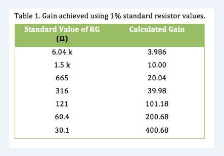表1. 使用1%標(biāo)準(zhǔn)電阻值可獲得的增益