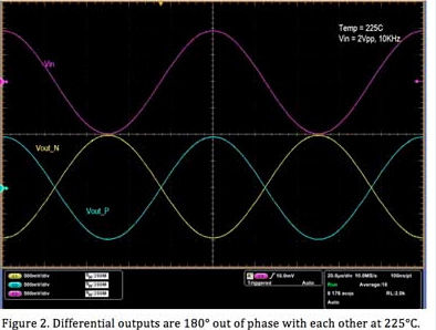 圖2. 差分輸出時(shí)彼此錯(cuò)相180°(溫度為225℃時(shí)測量)