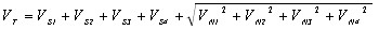每個ADC的輸入由信號項(VS)和噪聲項(VN)組成。將四個噪聲電壓源求和可得到總電壓 VT, 它是四個信號電壓加上四個噪聲電壓方和根的線性和,例如: