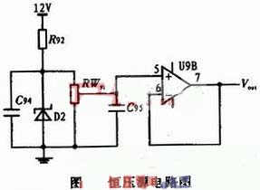 圖1中D2為穩(wěn)壓管,9V電源選用額定擊穿電壓為9.1 V的1N4696,1 V電源選用額定擊穿電壓為1.2 V的LM385;RW92是電位器,和穩(wěn)壓管并聯(lián)起到分壓的作用,滑動(dòng)頭分別可得到9 V和1 V的電壓;運(yùn)放在這里是電壓跟隨器,輸出電壓和電位器滑動(dòng)頭處的電壓大小相等;R92是限流電阻,和穩(wěn)壓管串聯(lián);兩個(gè)電容是退耦電容,大小0.1 μF,起到穩(wěn)定電壓的作用。為了不影響穩(wěn)壓管工作電阻阻值不大于500 Ω,電阻功率不小于1 W。電位器阻值不小于10 kΩ。