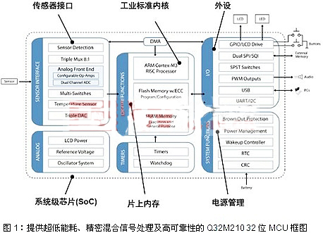 1) 用于血糖儀等便攜式醫(yī)療設(shè)備的Q32M210 32位混合信號(hào)MCU方案